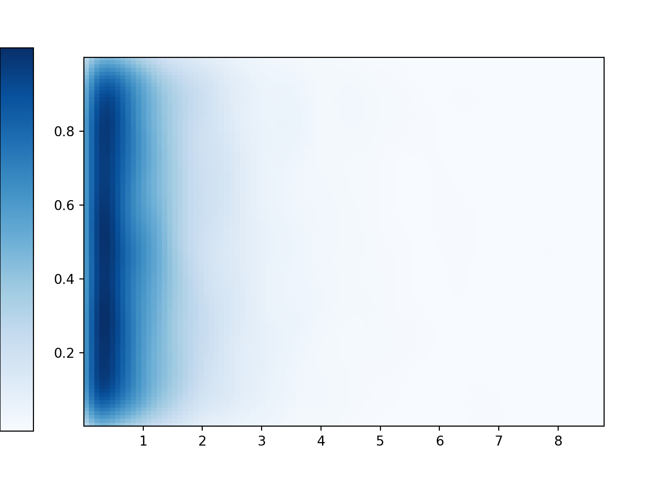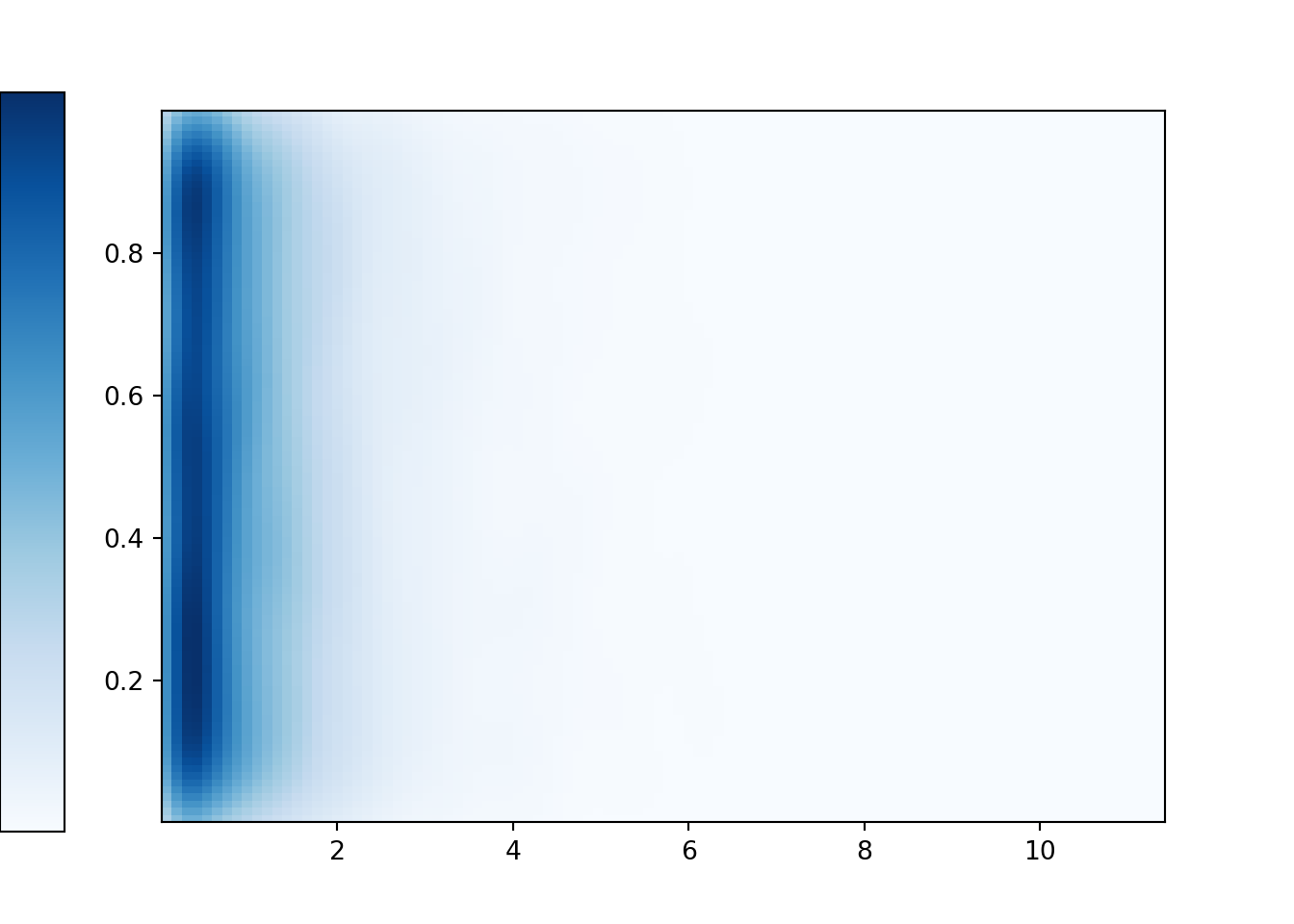 - See the simulation results below. Each vertical slice, corresponding to the distribution of values of \(Y\) for a given value of \(X\), has constant Uniform(0, 1) density. Each horizontal slice, corresponding to the distribution of values of \(X\) for a given value of \(Y\), has an Exponential(1) density.