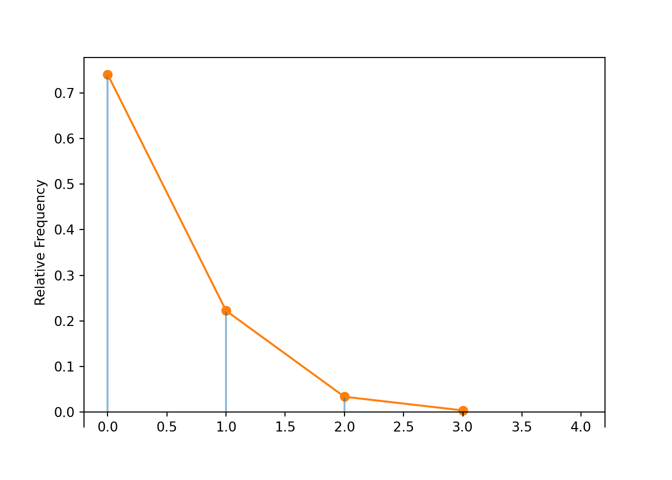 RV(Binomial(2000, 0.00015)).sim(10000).plot('impulse')
