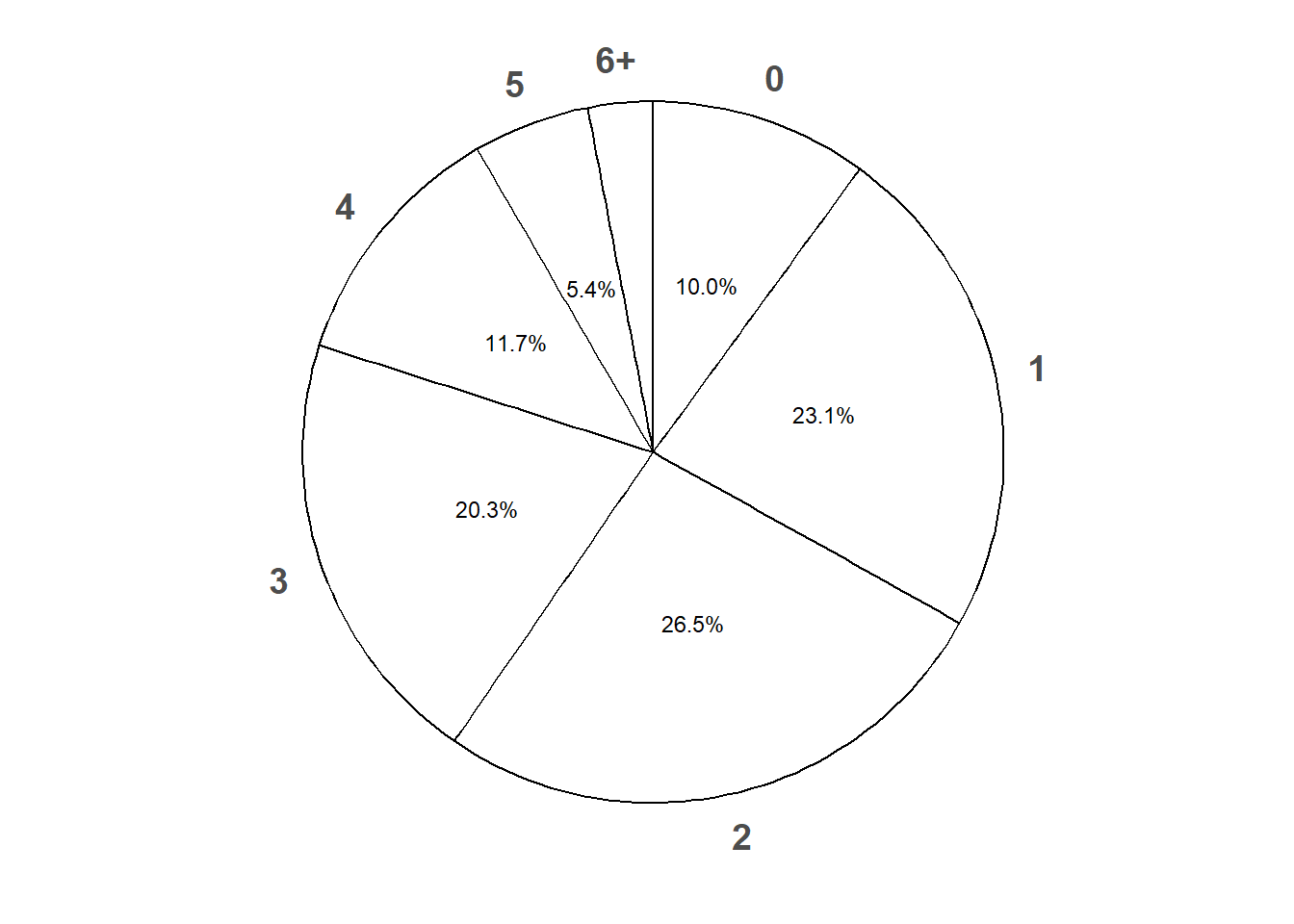 Example 14.3 Let \(X\) be the number of home runs hit (in total by both teams) in a randomly selected Major League Baseball game. Technically, there is no fixed upper bound on what \(X\) can be, so mathematically it is convenient to consider \(0, 1, 2, \ldots\) as the possible values of \(X\). Assume that the pmf of \(X\) is