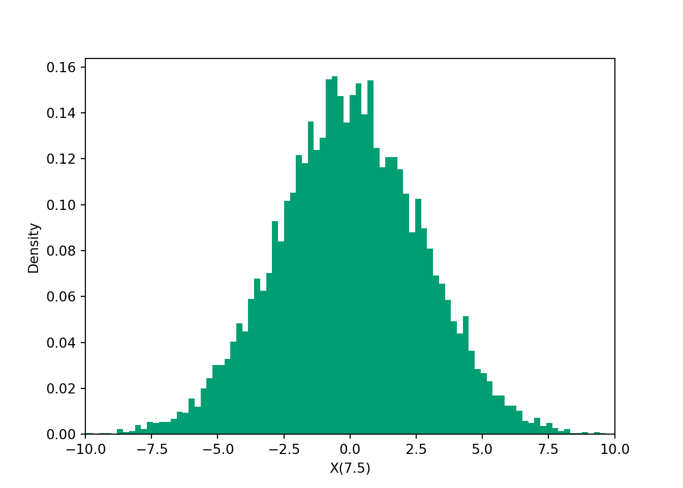 - Essential concept: At each fixed point in time \(t\), \(X(t)\) is a random variable, and so it has a (marginal) distribution.