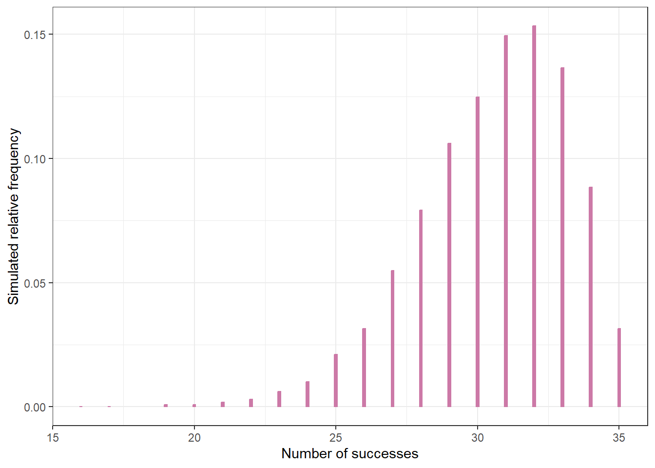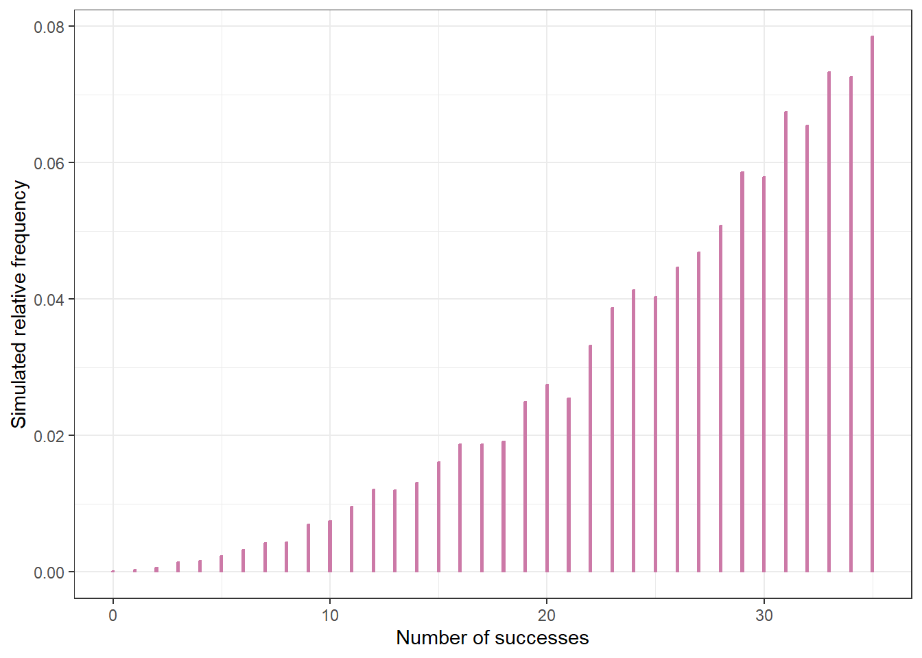 rbeta. - Given \(\theta\), simulate \(y\) from the Binomial(35, \(\theta\)) distribution.