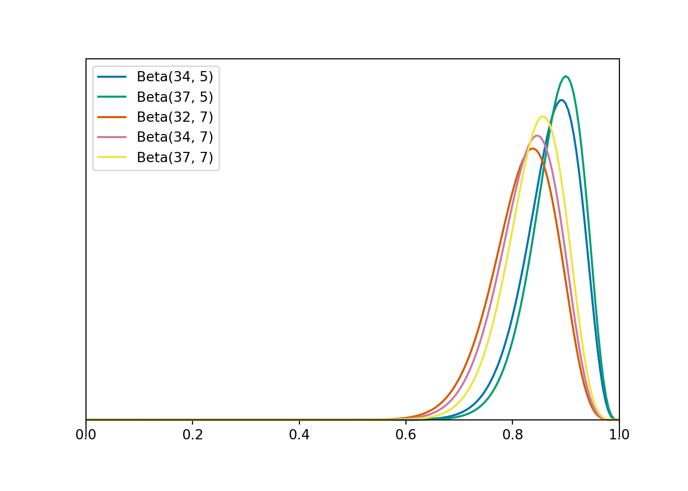 - In a sense, you can interpret \(\alpha\) as “prior successes” and \(\beta\) as “prior failures”, but these are only “pseudo-observations”. Also, \(\alpha\) and \(\beta\) are not necessarily integers.
