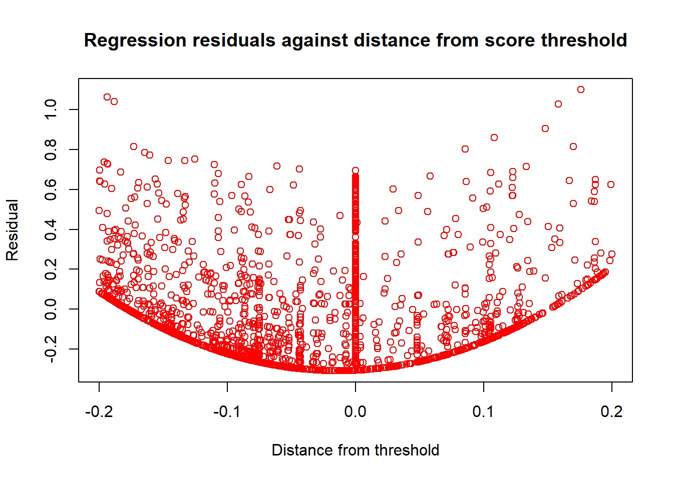 # regressing mean airstrikes on distance from the threshold with a second-order