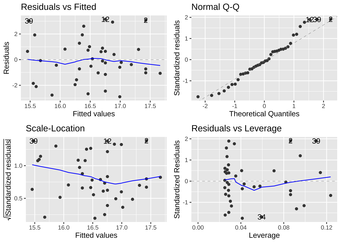 dplyr::select(lysozyme, spermViability, .fitted, .resid)## # A tibble: 40 × 4