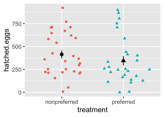 One high-level summary here could be the difference in mean eggs hatched in preferred vs. nonpreferred matings