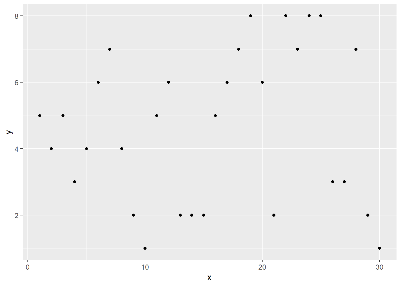 ggplot(df)+aes(x,y)+geom_point()