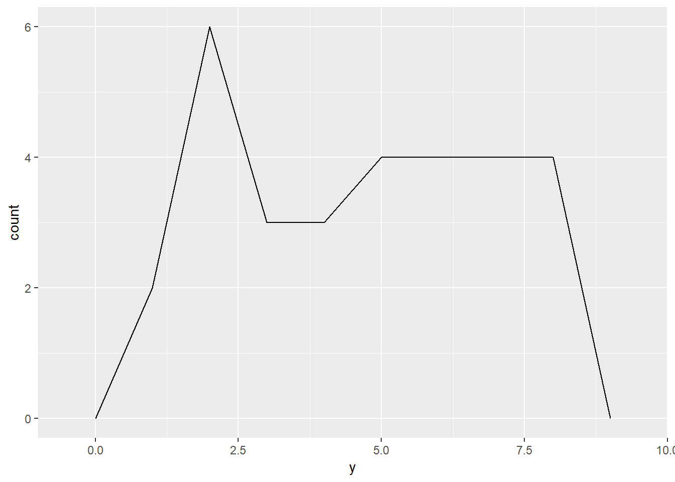 ggplot(df)+aes(y)+geom_freqpoly(binwidth=1)