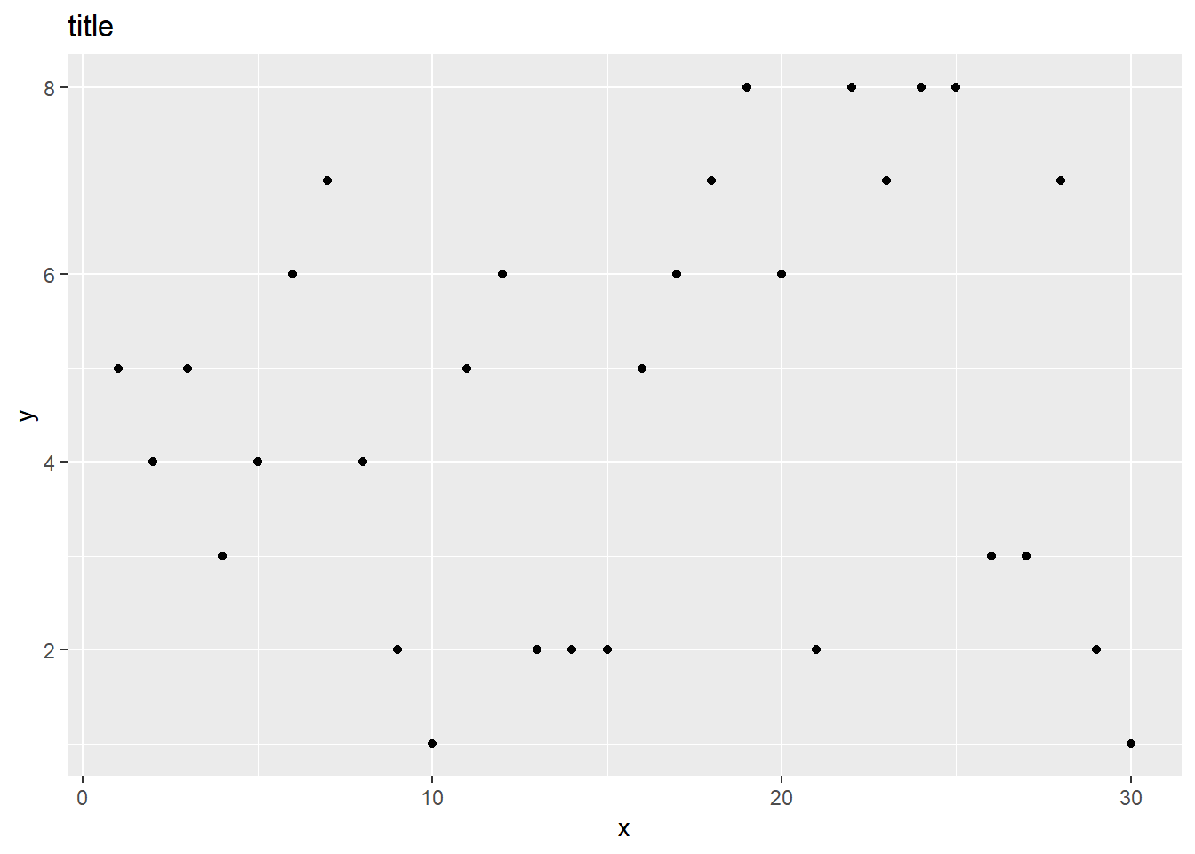 ggplot(data, aes(x,y))+ geom_type() + optionsx<-1:30