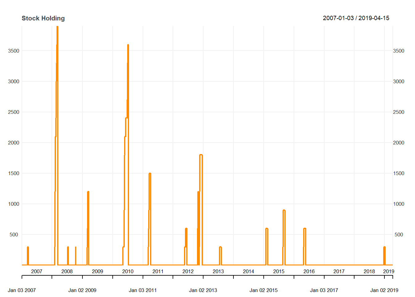 signal<-reclass(signal,price)Assume buying at closing price. We keep track of how cash and stock changes: