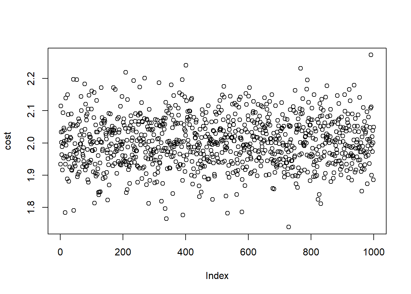 cat("Estimated cost and sd are", est.cost," and ", est.sd)## Estimated cost and sd are 2.003041 and 0.9919344