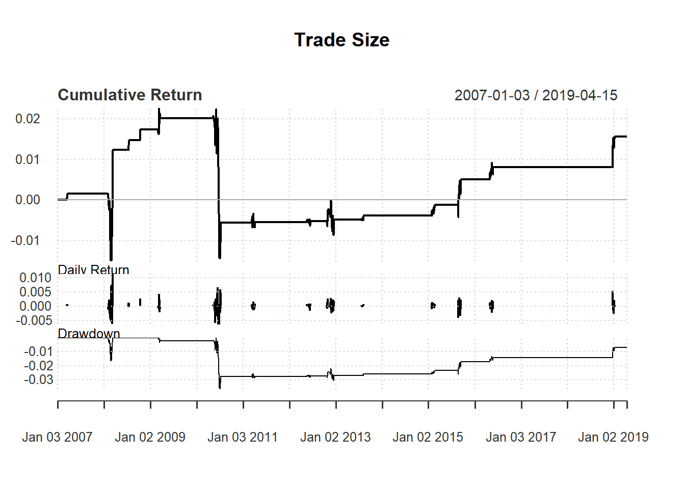 charts.PerformanceSummary(ret3, main="Trade Size")