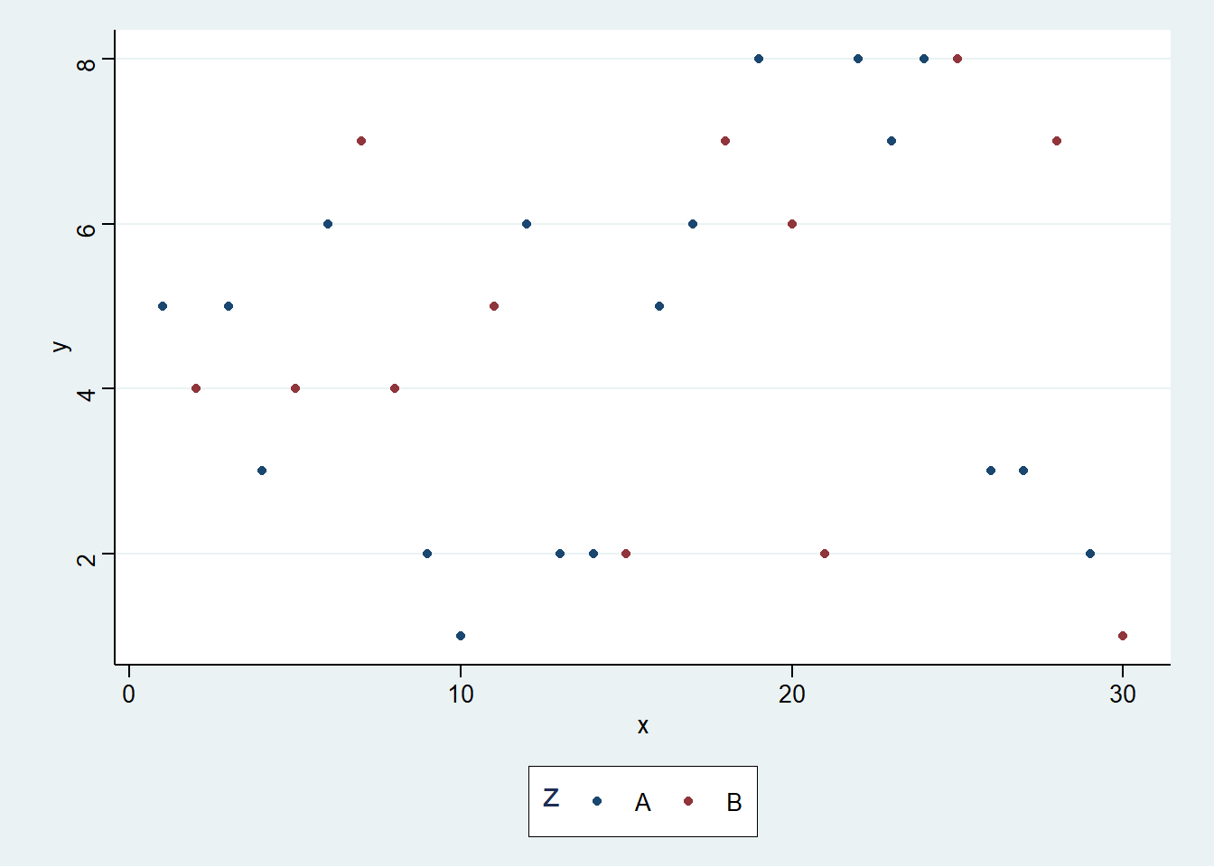 'B','A','A','A','B','A','A','B','A','B')df<-data.frame(x,y,z)11.1.1 Qplot