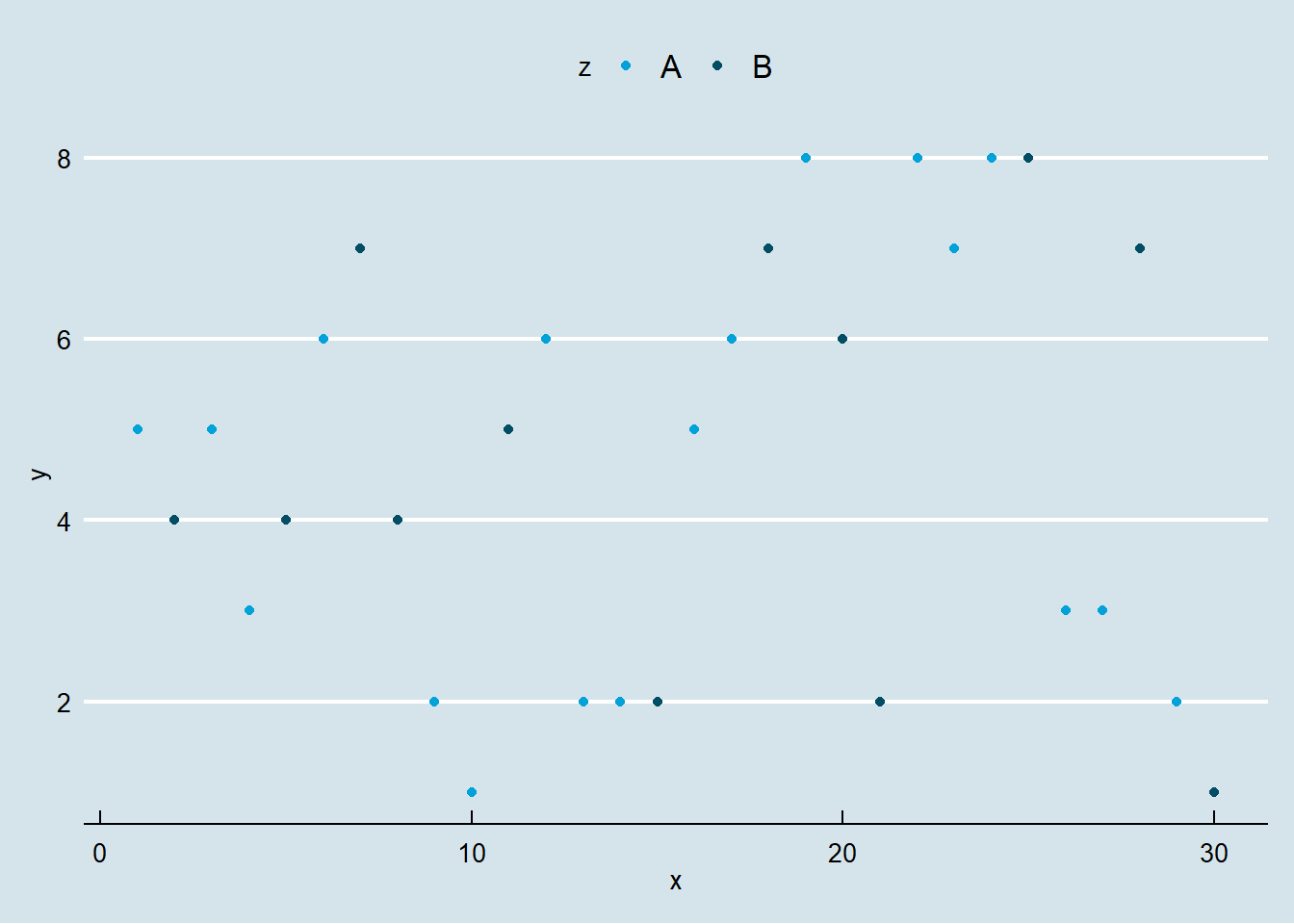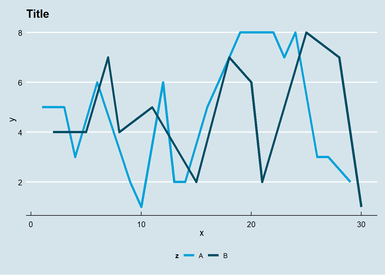 To get the Stata theme, we use theme_stata() and scale_colour_stata()