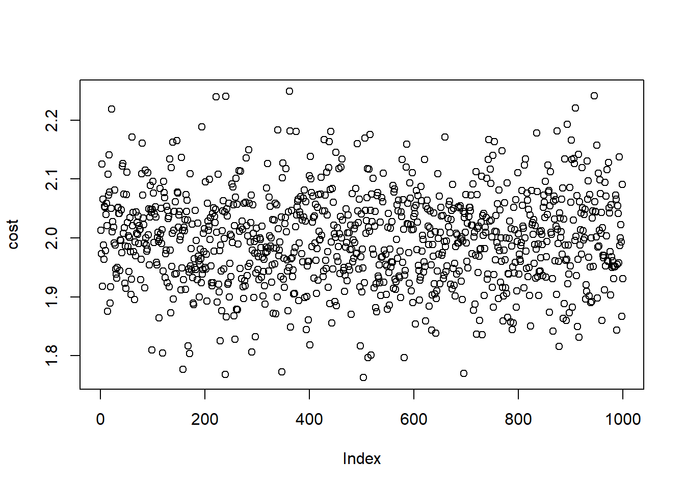 cat("Estimated cost and sd are", est.cost," and ", est.sd)## Estimated cost and sd are 1.998507 and 1.00303
