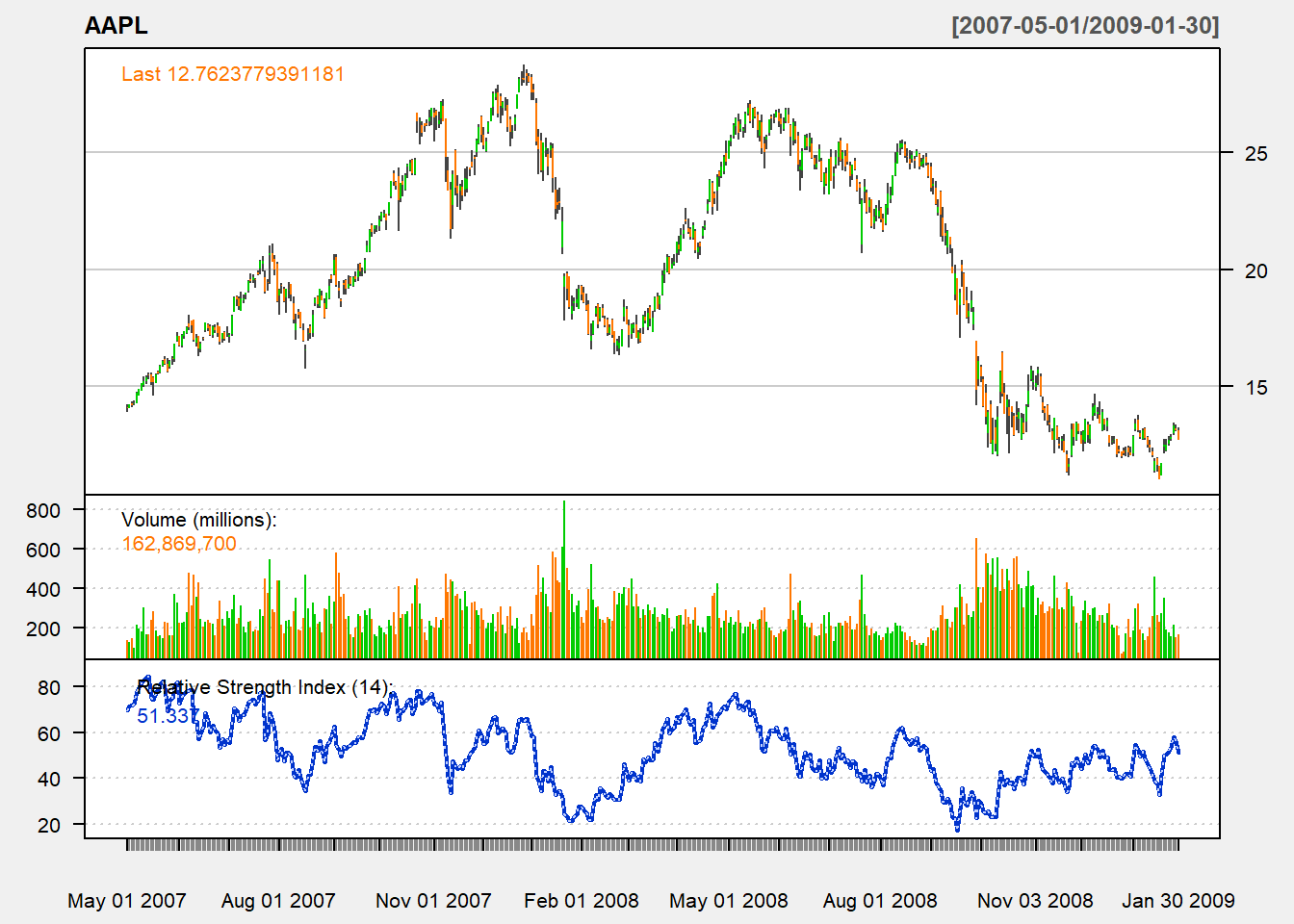 rsi <- RSI(Cl(AAPL), SMA, n=14)