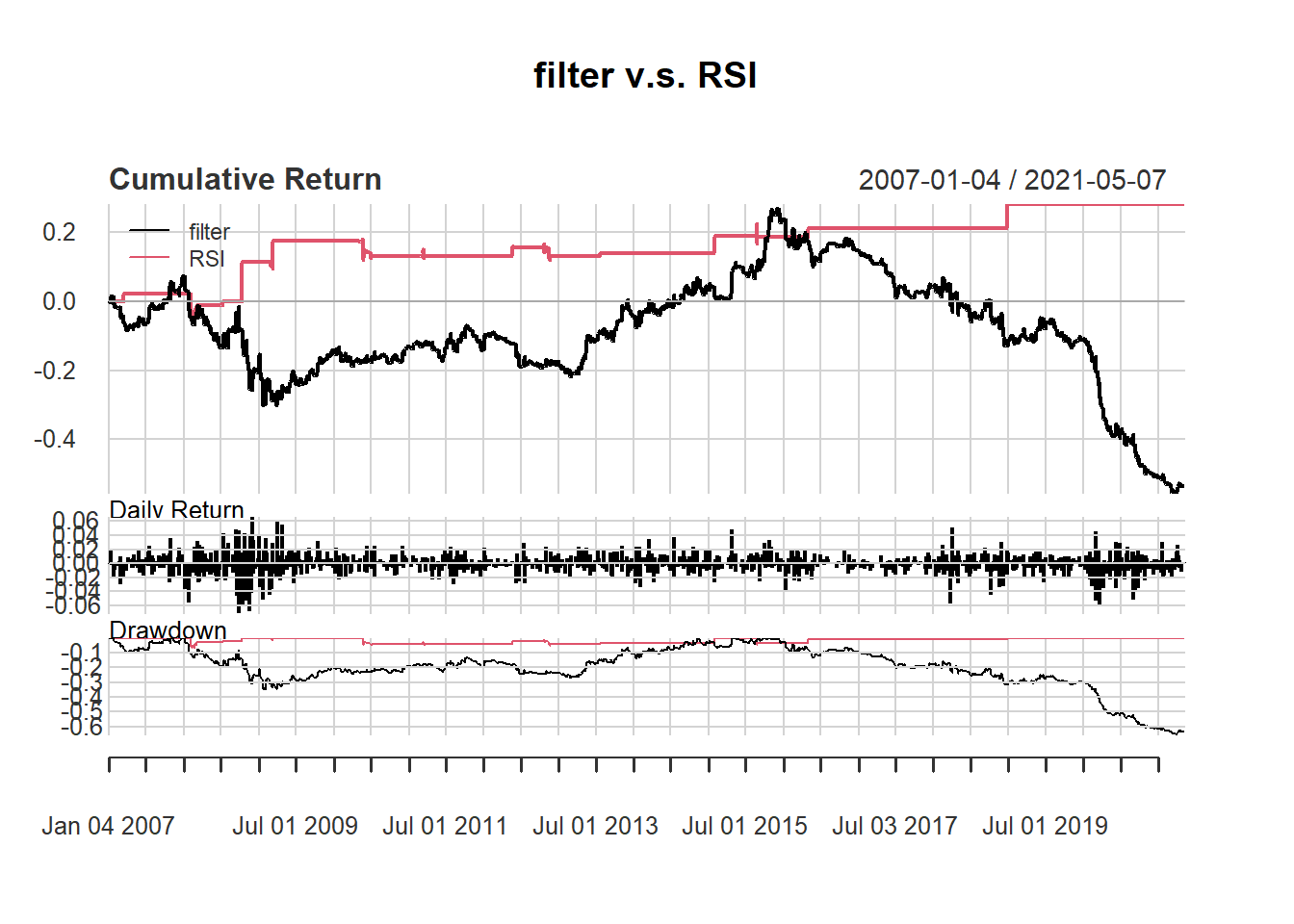 We can compare filter and RSI rules directly.