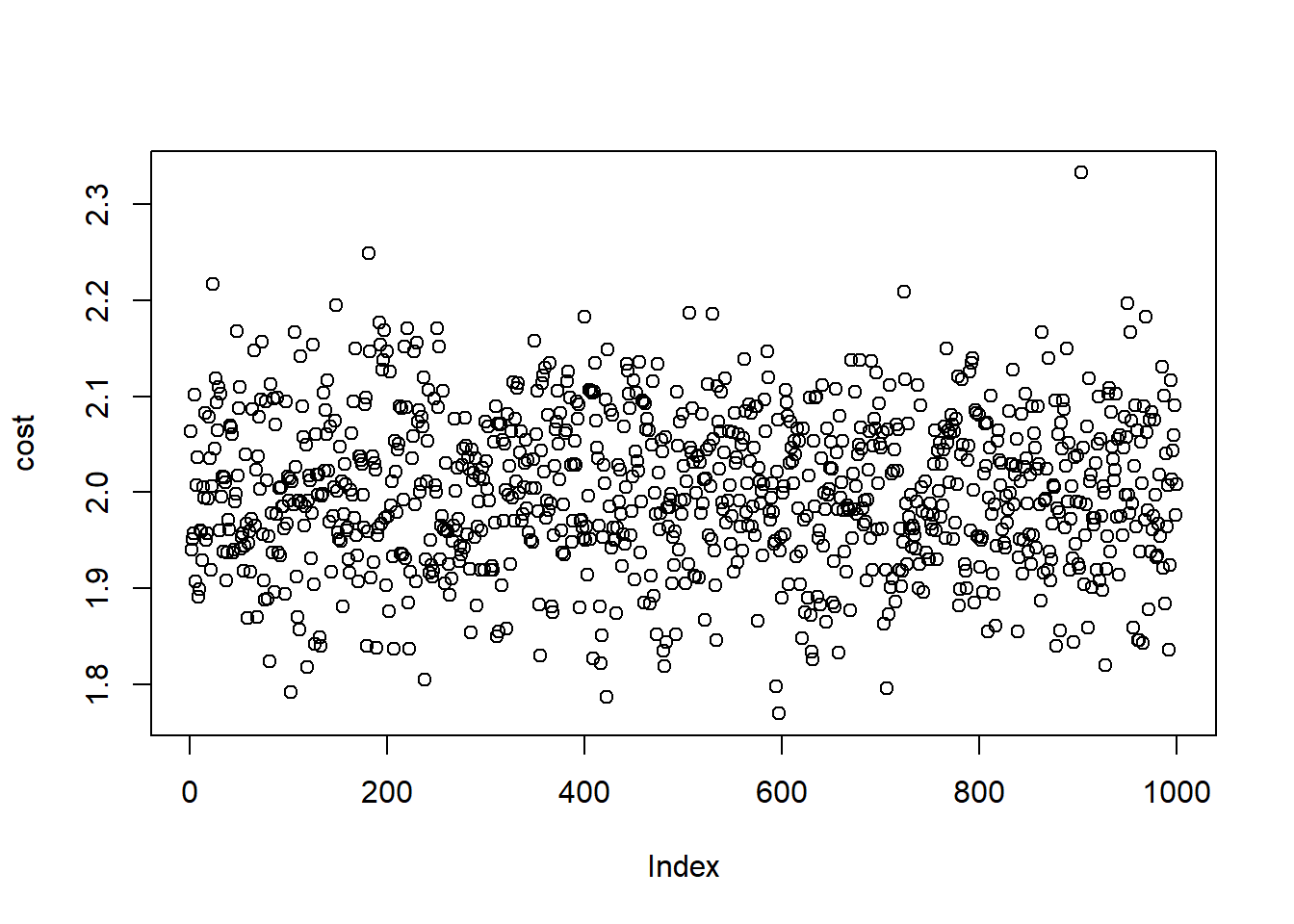 ## Estimated cost and sd are 2.00173 and 0.9894574