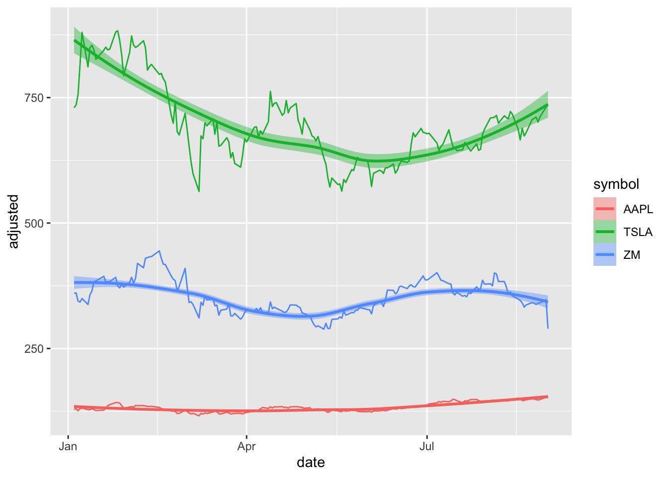 Let’s now add an additional column in the tibble that identifies the symbol of the stock: