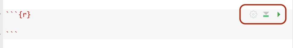 To run an R chunk click on the green button at the end of the first line inside the chunk: