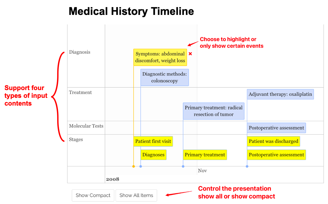 group: group names Accept 4 groups including diagnosis, treatment, tests, stages