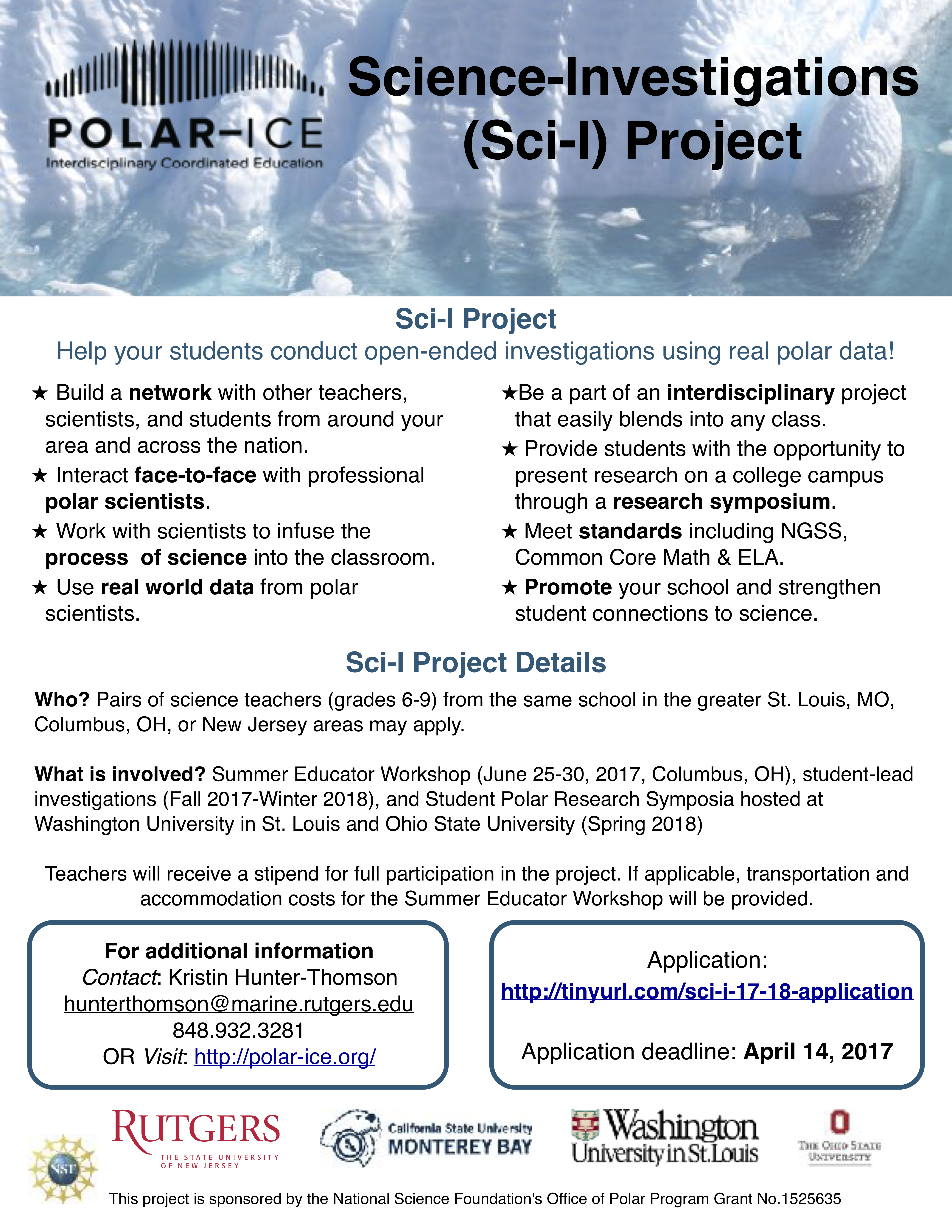 We developed a flyer (Figure 1) to attract applicants and articulate the project requirements. In the flyer, we provided contact information and links to the project webpage for more information for those interested. We also articulated out what would expected during each time frame and phase of the project (summer, fall/winter, spring) to quickly help readers get a sense of what the opportunity was about.