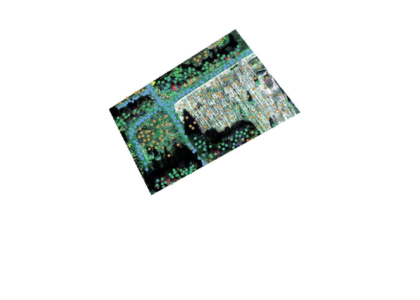 In the activity folder, you will find four tif files, each named with the date of the flight, and a shapefile of points that contain an identified land cover for each location and a label that was randomly selected to act as training or validation data. Let’s look at one of the drone flights that was taken in October: