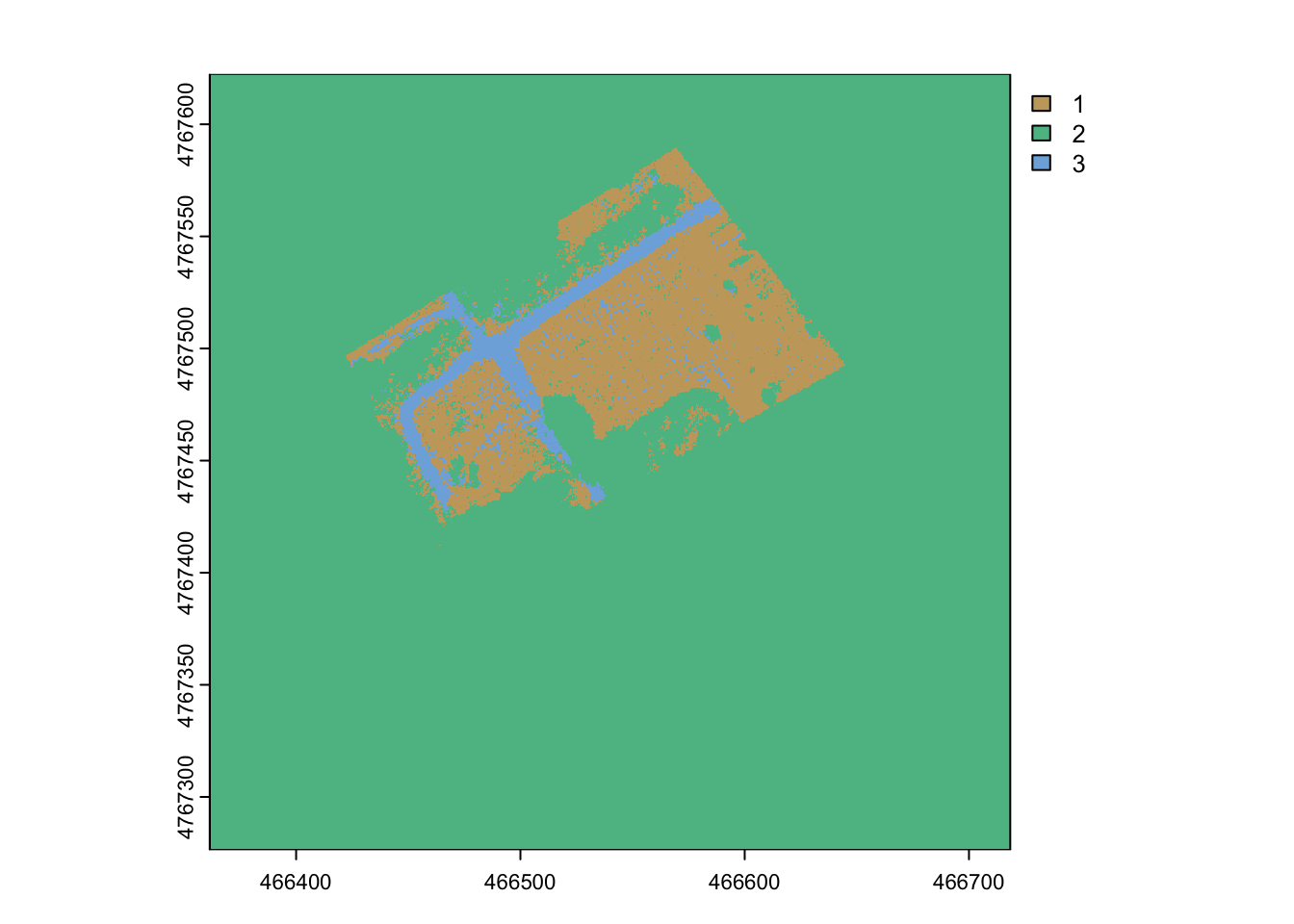 terra::plot(rf_prediction_mask, col= hcl.colors(3, palette = "Harmonic"),