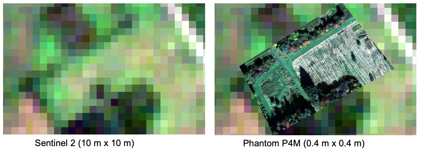 Source: A comparison of Sentinel 2 satellite imagery to imagery from a drone (Phantom P4M)