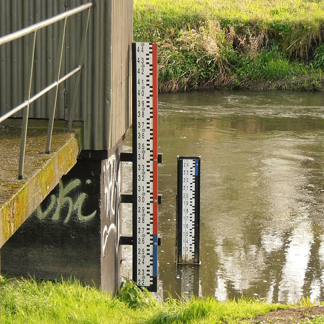 The stream stage is the height of the water surface in a stream, river, body of water. The reference point is commonly referred to as the datum. There are many automated ways to measure stream stage. An example of an analog approach is shown below. The USGS default is to measure stream stage in feet.