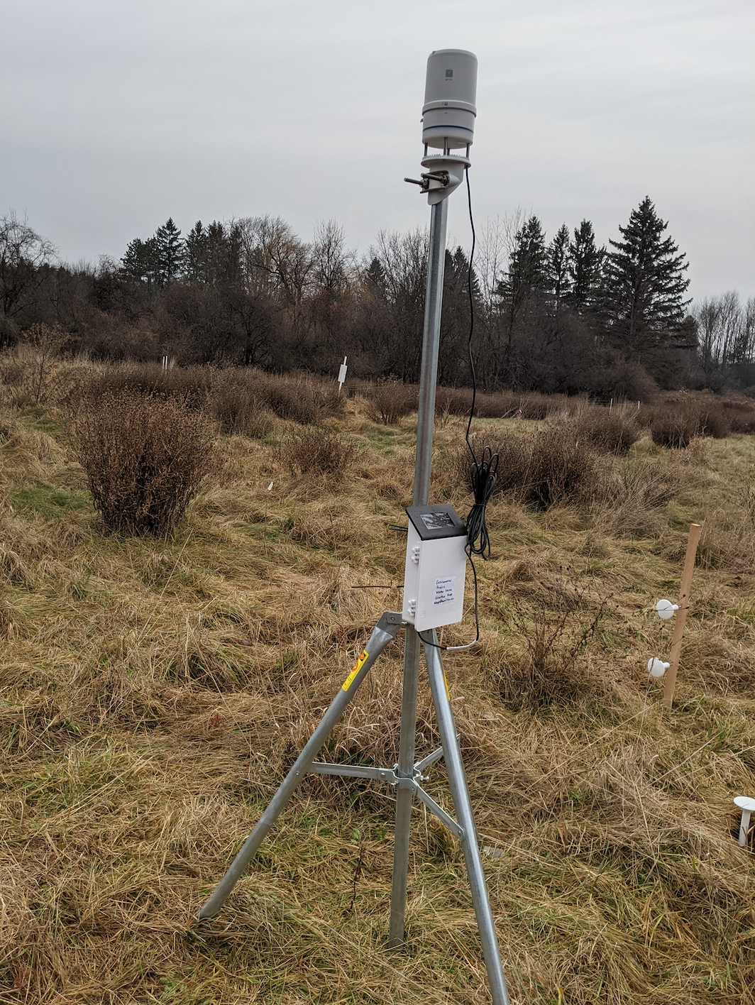 An low-moderate accuracy all-in-one weather station installed on a reforestation plot on the Hamilton campus