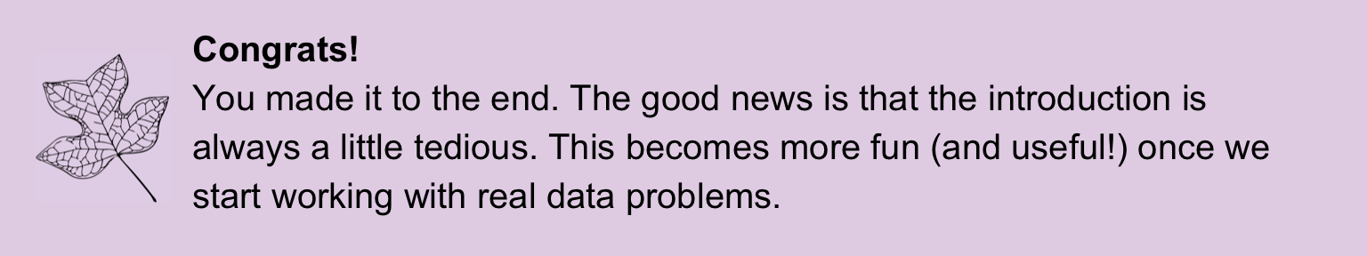 Since R is just like a sophisticated calculator, you can read in numerical operations and will get the calculations as output. Type a few different operations like the one below that follow typical mathematical notation on a keyboard. Note I’ve included both the code (grey boxes) and outputs (blue boxes) here for an example.