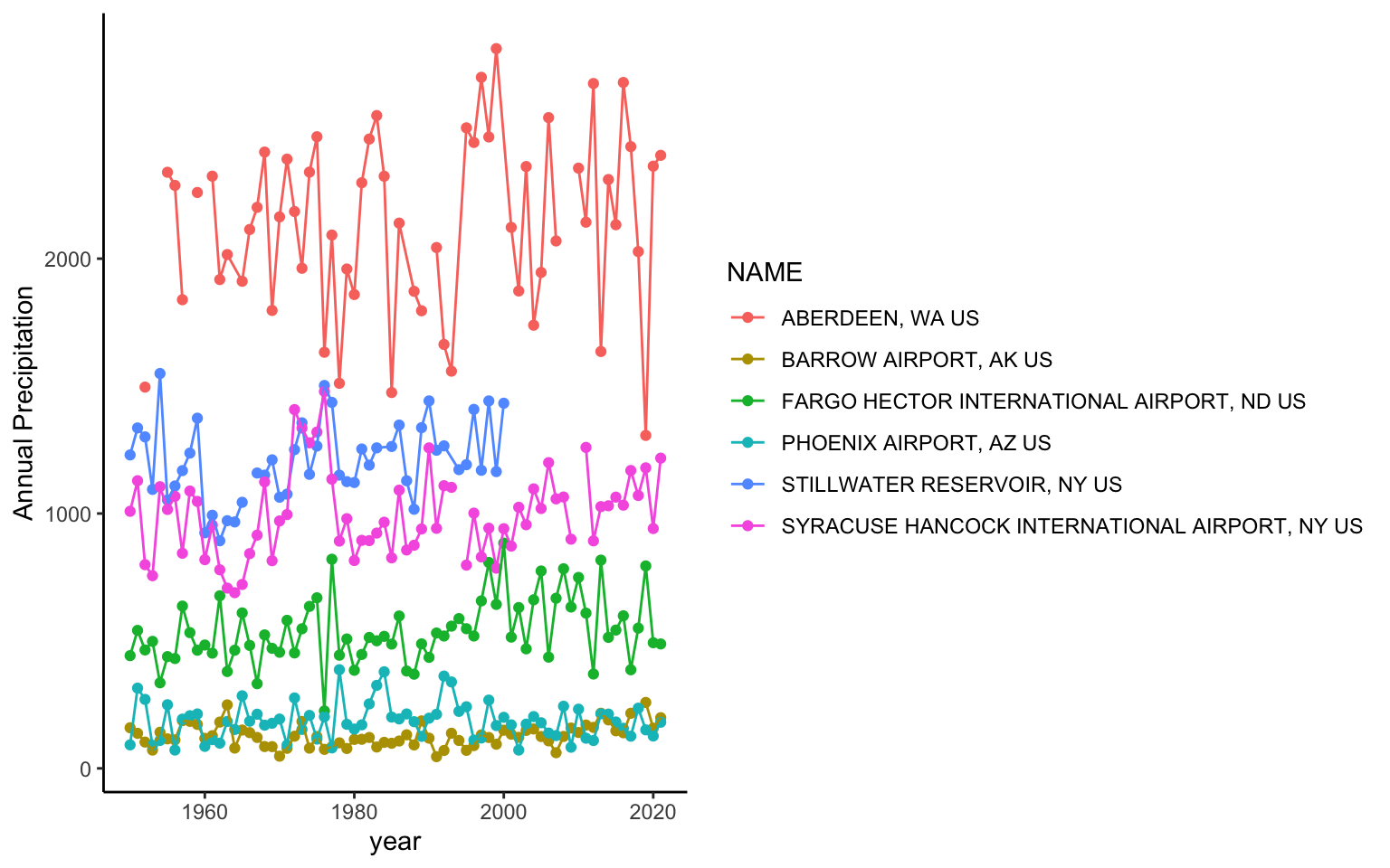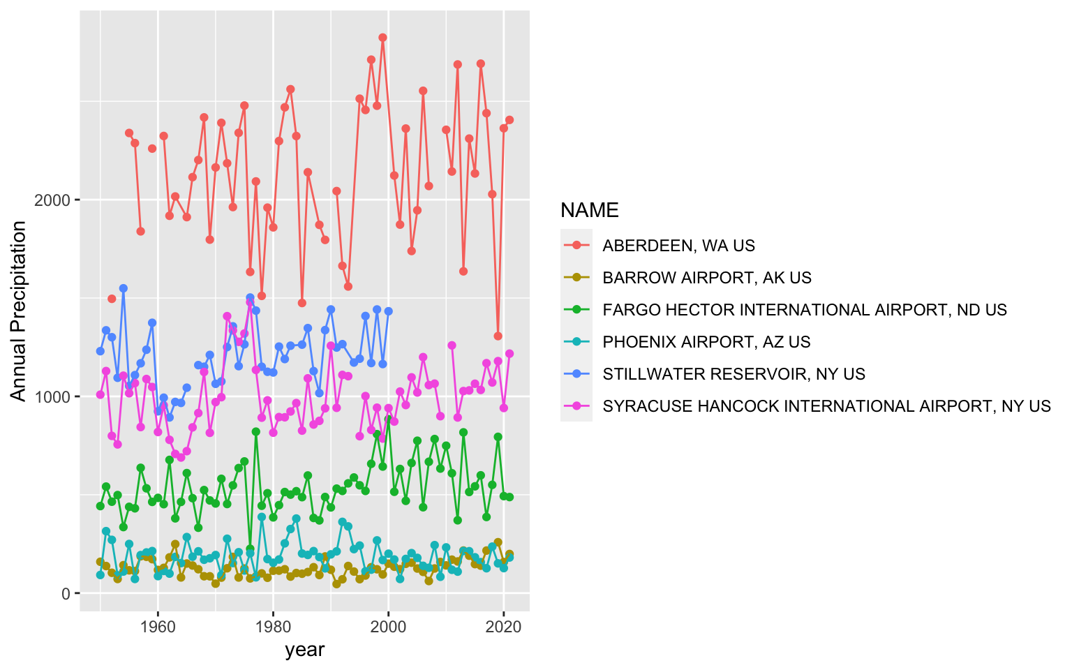 labs(x="year", y="Annual Precipitation")+ # make axis labels