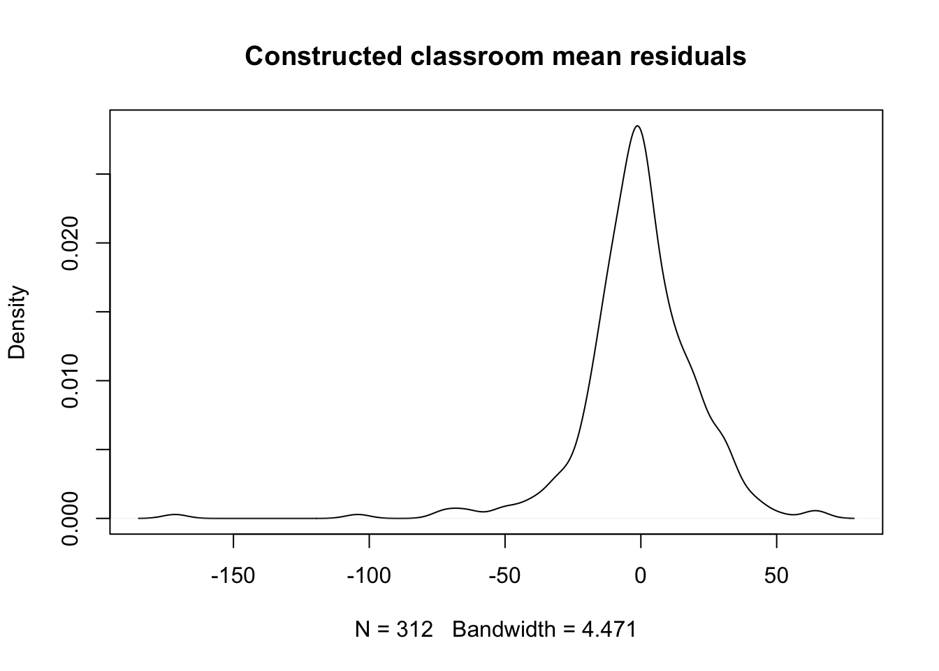 - Let’s take the average of these residuals at the school level and use them as a first approximation—an estimate of \(\zeta_k\).