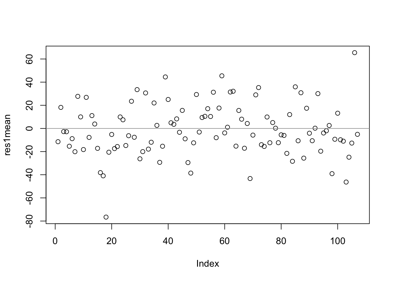 - The main point of this plot is that different schools have different mean residuals. This is not ‘evidence’ of homoscedasticity (though the picture looks similar), as (1) there is only one data point per school, so they do not represent variance; (2) the data points are averages of residuals; (3) the x-axis is arbitrary.