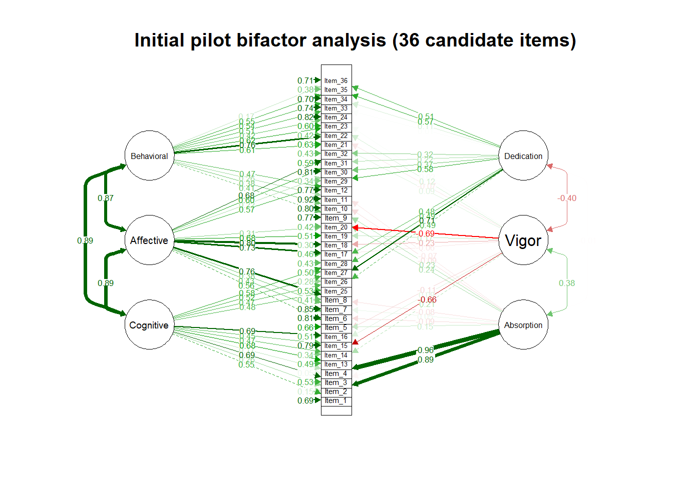 Note. The bifactor model did not actually converge, so no fit indices are available for the bifactor analysis of the 36-item pilot instrument.