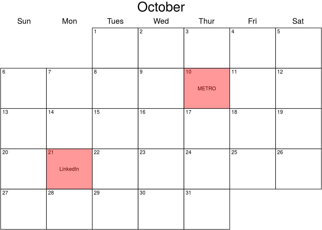 | Possible Metro Event | 11/14/2019 | ?? | Mentors and mentees can go together to a METRO event to connect with other members of the field and gain more insight on hot topics from experts. | Varies | http://www.metroapppsych.com/ | NA |