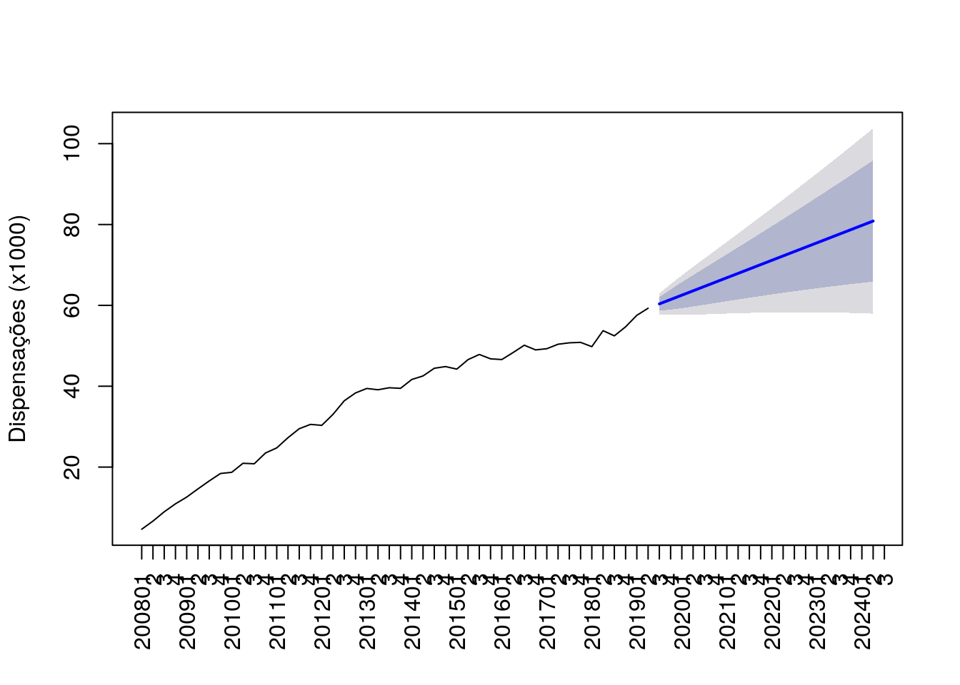3.11 Extrapole - O que - Projeção do número de dispensações por trimeste e previsão com o método ARIMA - E