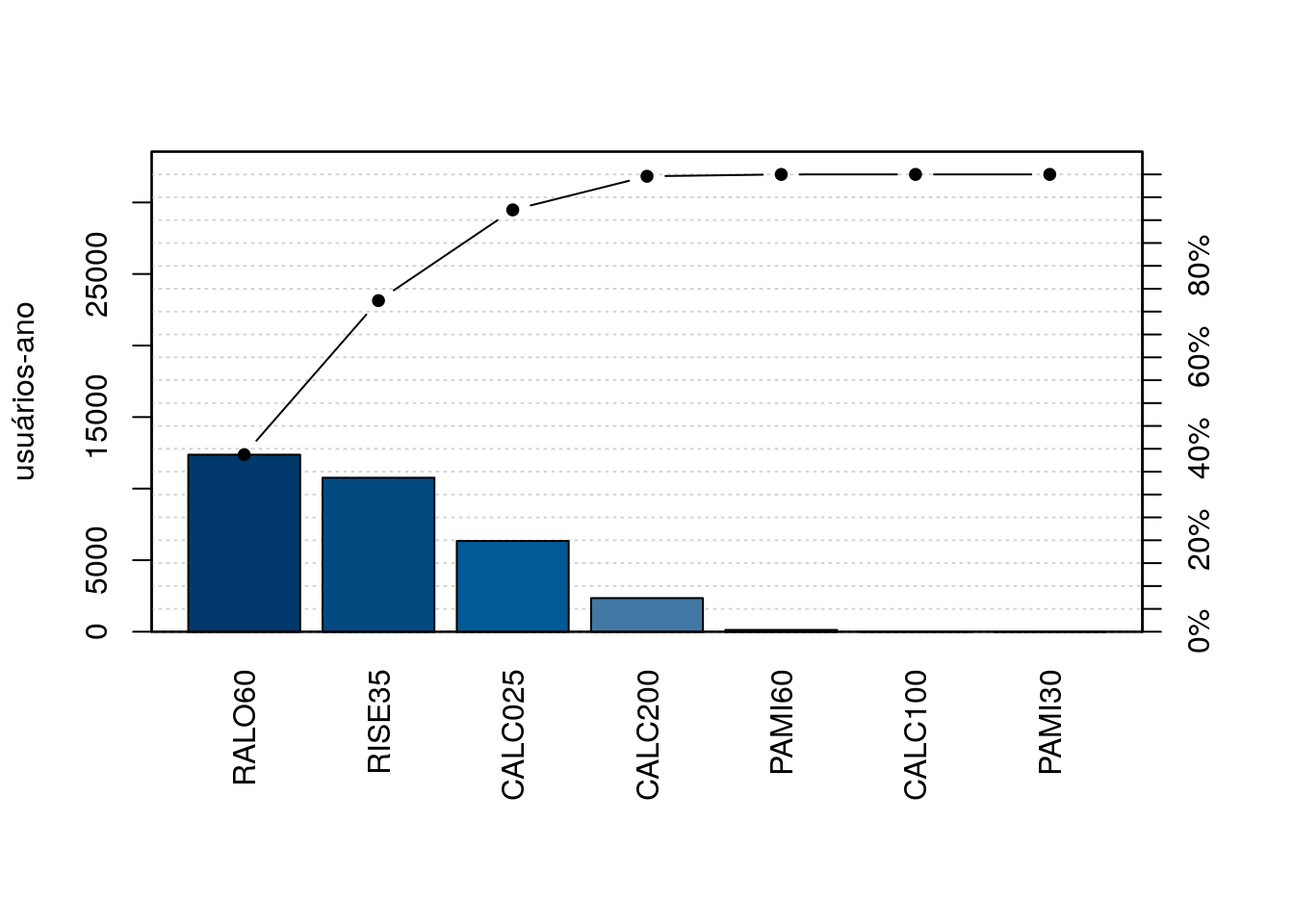 - Usualmente verifica-se o número de medicamentos que correspondem a 80% do número de usuários, verificados da esquerda para a direita.