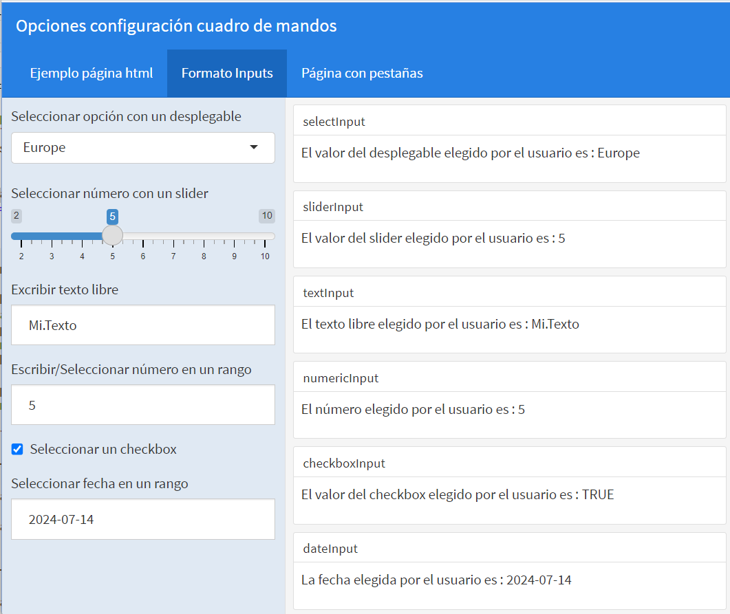 cada menú desplegable se crea usando la función selectInput. Esta función asocia un nombre al campo de este menú desplegable, por ejemplo country1, en el interior de las funciones que dibujan, se accede al valor de este campo a través de input$country1.