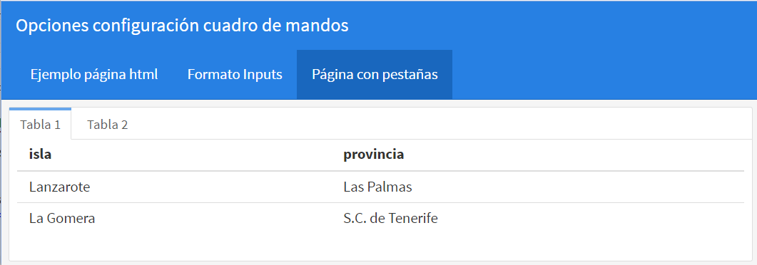 En la tercera página se muestra una página con 2 pestañas que nos permite acceder a dos subpáginas diferentes: