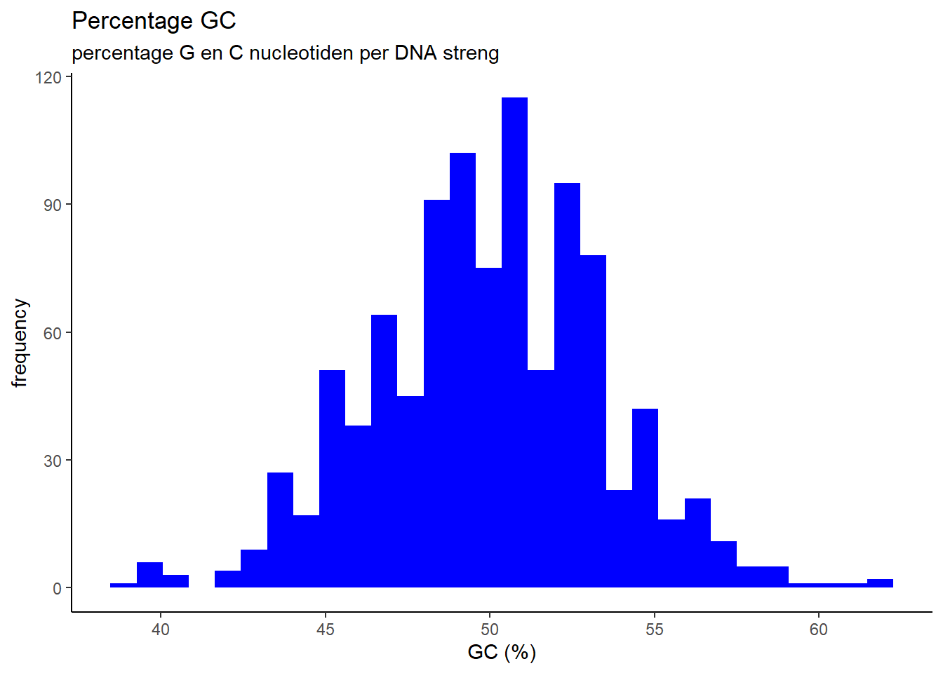 subtitle = "percentage G en C nucleotiden per DNA streng",