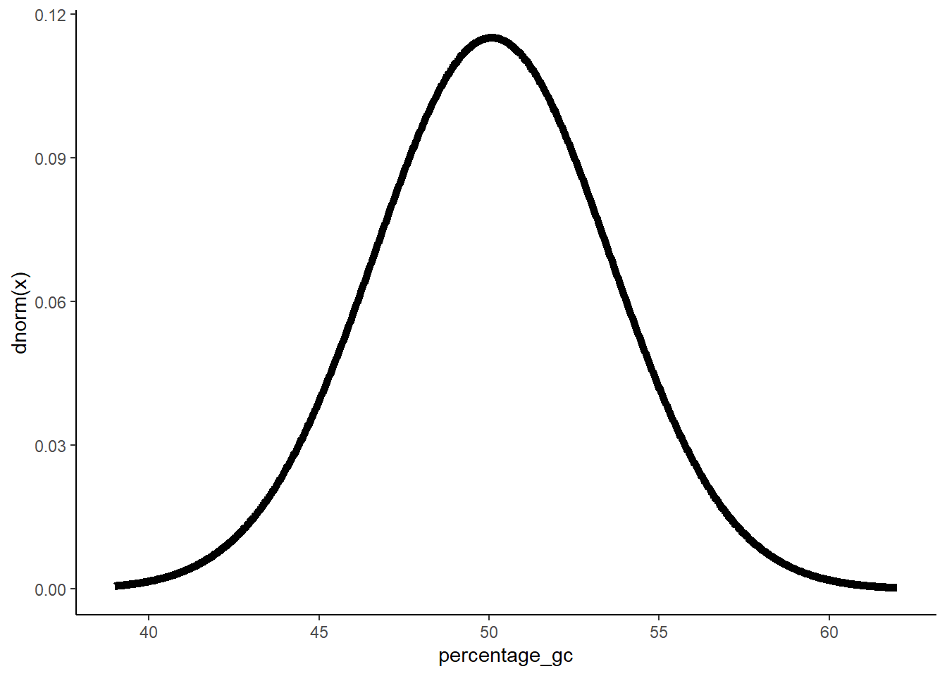 cg_percentages stat_function(fun = dnorm, n = 1000, args = list(mean = 50.0755, sd = 3.464831), size=2) + ylab("")+