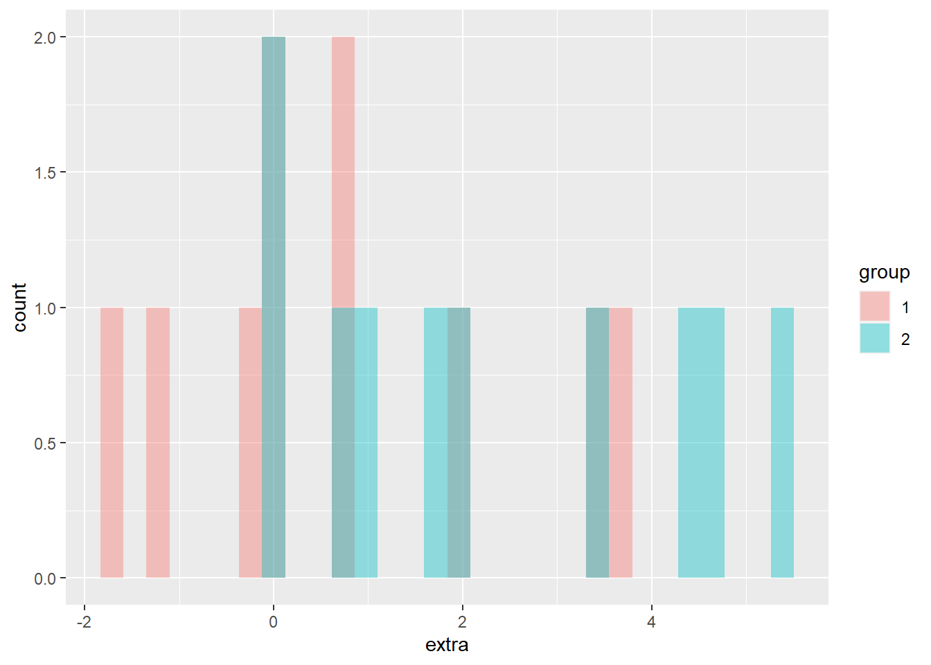 ggplot(data = df, aes(x = extra, fill = group)) +