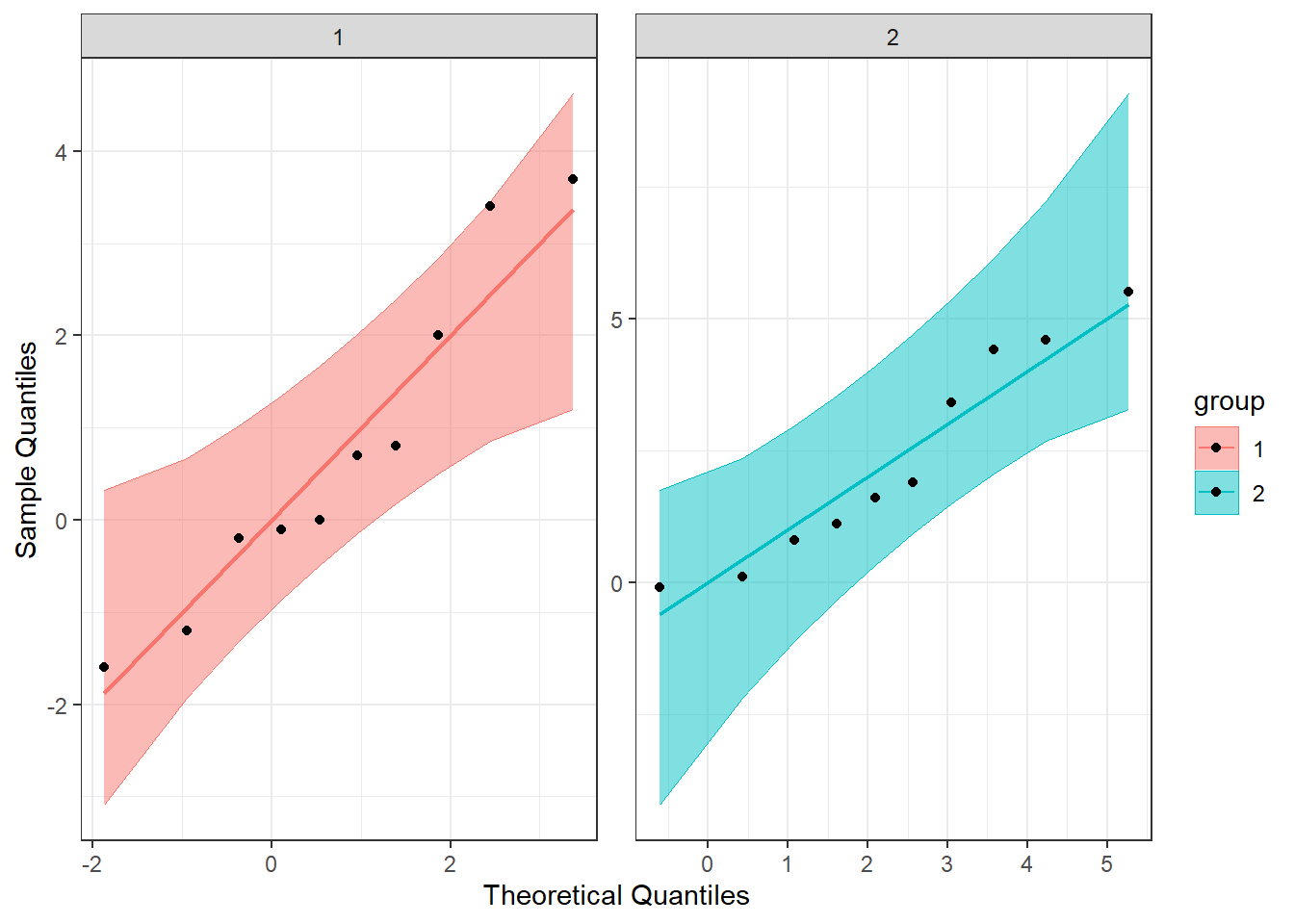 stat_qq_band(alpha = 0.5, conf = 0.95, bandType = "pointwise") +