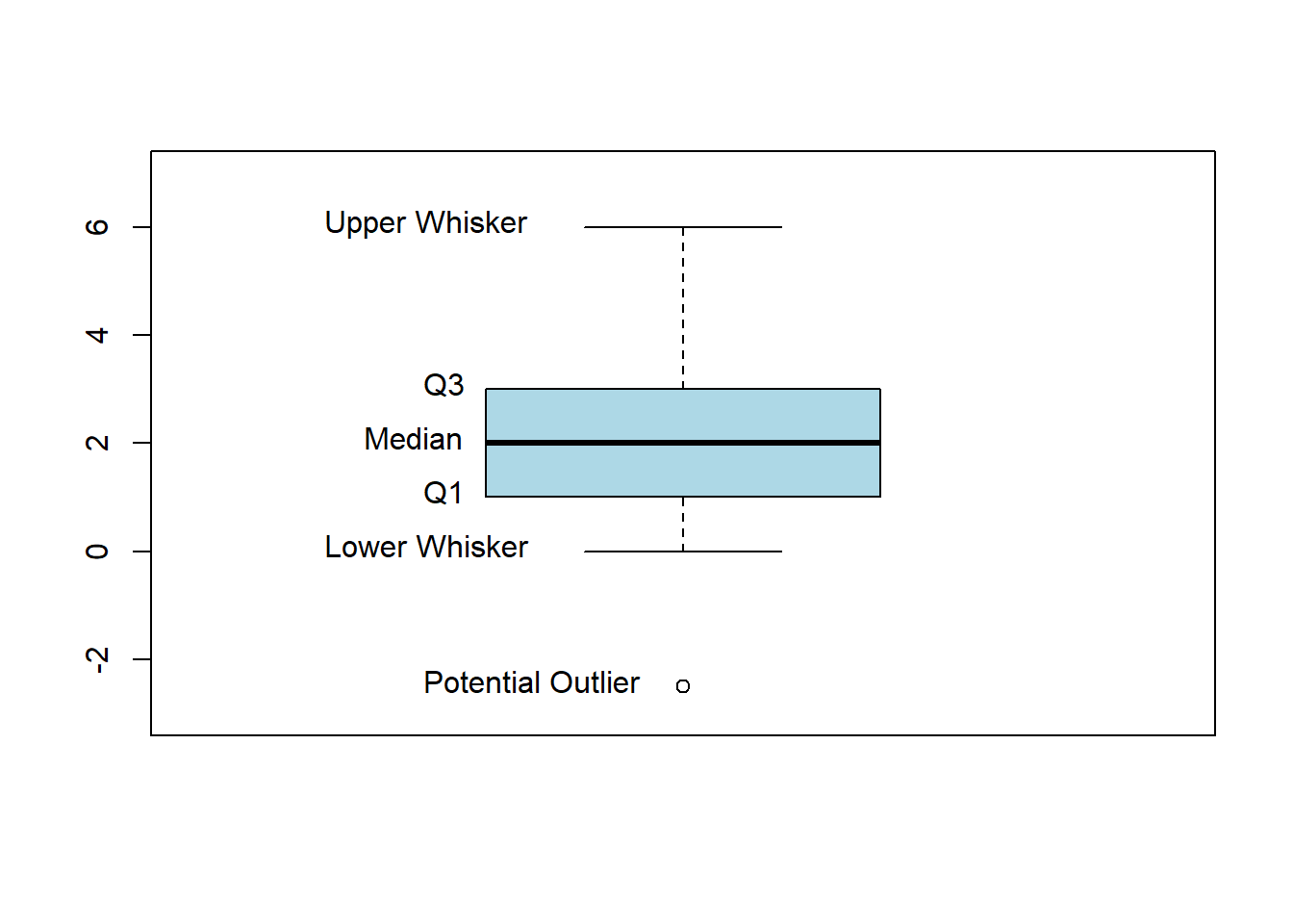 - Any points outside the whisker limits are included as individual points. These are potential outliers.