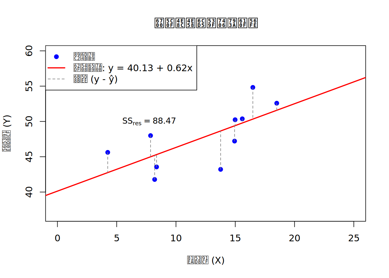 考虑距离为离均差的话,离均差的平方 ,如果已知所有y的取值,试图找到让这个方程取值最小的x值,即二次函数顶点,↩︎