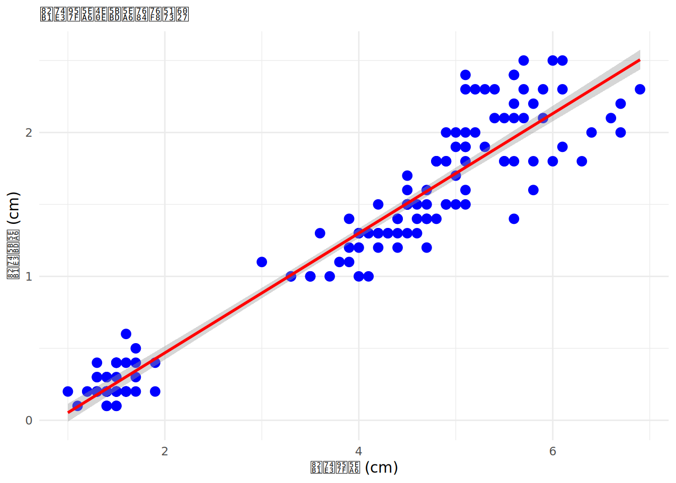 不过当我们放到皮尔逊相关这个角度去摸这只大象时,不妨回忆一下,如果我们坐在统计的课堂上,当老师讲解这个概念时,使用的例子是什么样的。比如下面这个图,使用的就是鸢尾花的数据,呈现了花瓣长度(x轴)和花瓣宽度(y轴)之间的关系。见过花的读者应该都知道,这两个变量之间显然存在关系,在同一个物种上,花瓣不能光横着长或者竖着长。就好像在ppt里缩放图片,显然你得按住shift缩放才能保住花的真实感。所以,花的长度越长,一般宽度就越宽,反过来也一样。
