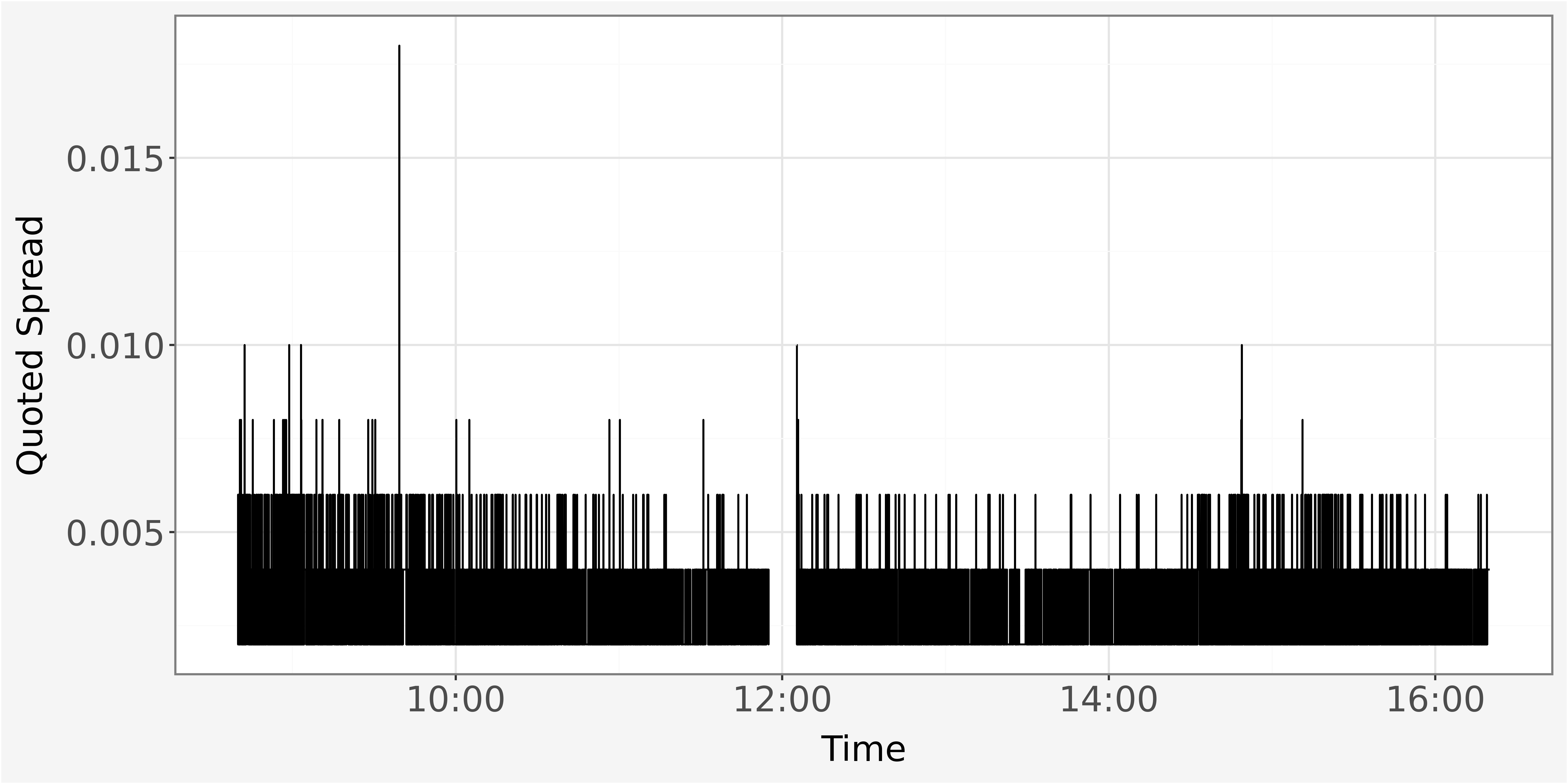 quotes_discretized = discretize(quotes, "5min")4.5.1 Spread