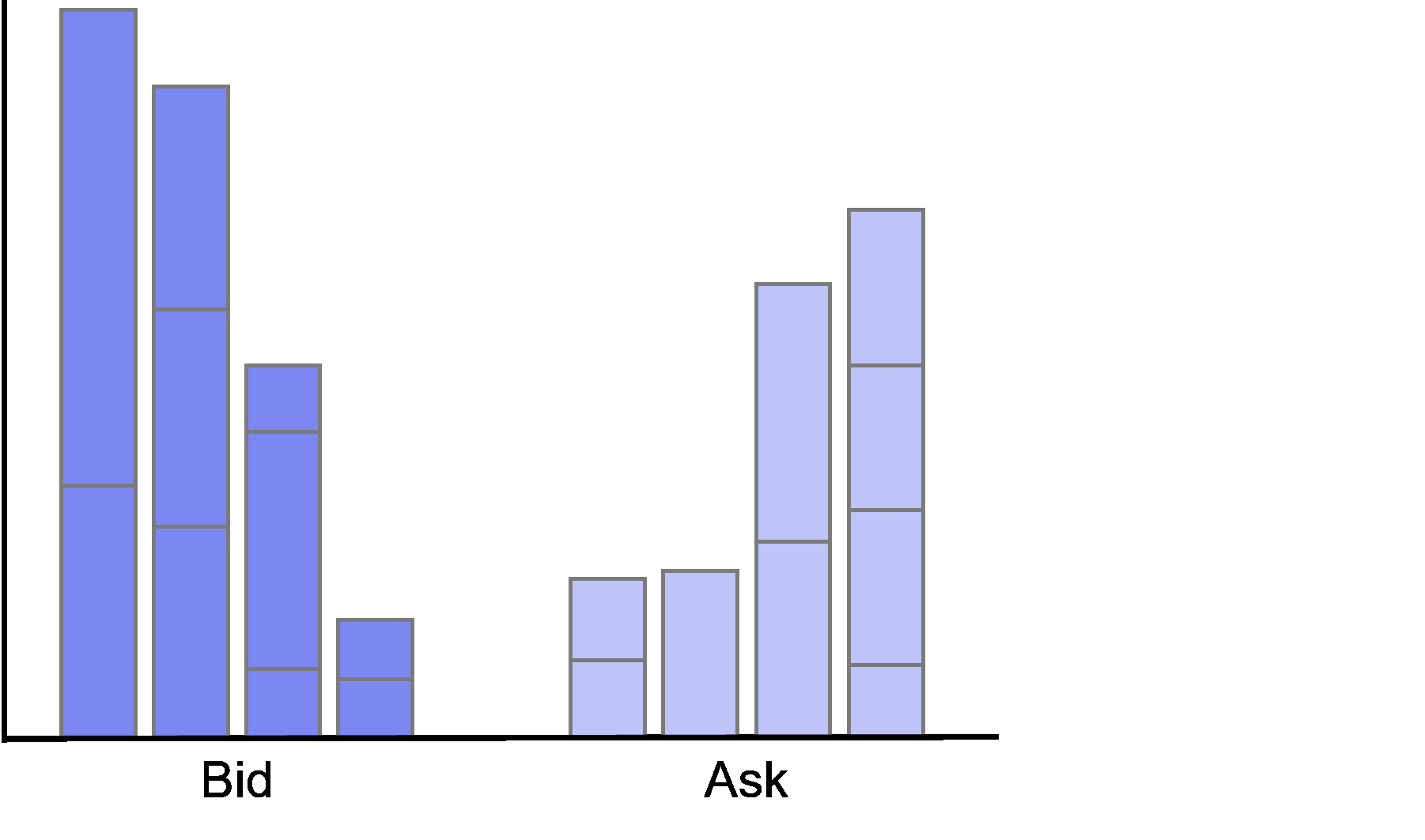 The order imbalance therefore takes values \(imb_t \in [-1,1]\). Negative value indicates buy pressure as the quantities on the bid side outweigh the quantities on the ask side while a positive value indicates sell pressure as the quantities on the ask side outweigh the quantities on the bid side.