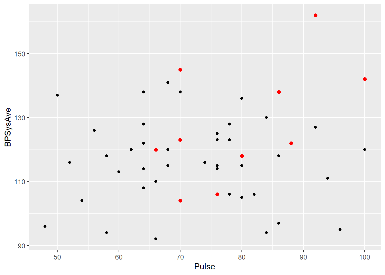 geom_point(aes(x = Pulse, y = BPSysAve))